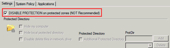 The function of Disable Protection provides the flexibility to administrators to allow workstations/users under particular policy group to access Protected Zone without e-locker protection. In general, it is not recommended to enable this function because it may cause leakage of sensitive files. However, sometimes administrators may need to disable e-locker protection temporarily. You may create a Policy Group with this function enabled. When you want to disable e-locker protection to workstations/users, you can simply assign them to this control policy group.