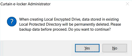 3.2. Click Yes to create Local Encrypted Drive, or click No to create the drive later.