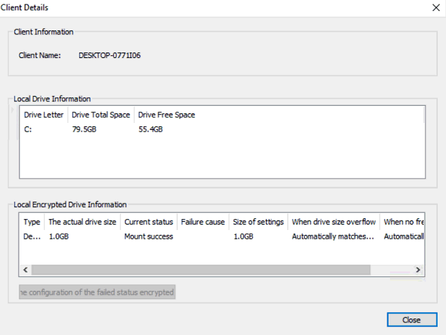 2.8. Double click a client in “Local Encrypted Drive settings” dialog box, to view detailed information.