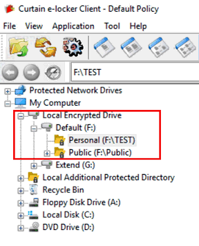 1) The first Local Encrypted Drive created must be Default local encrypted drive. Under local encrypted drive, you can see there are two folders, namely Personal and Public. The Personal folder is for the current login user only, while the Public folder can be used by other users. So, you can use Personal folder for storing your private documents and use Public folder for sharing documents in the client.