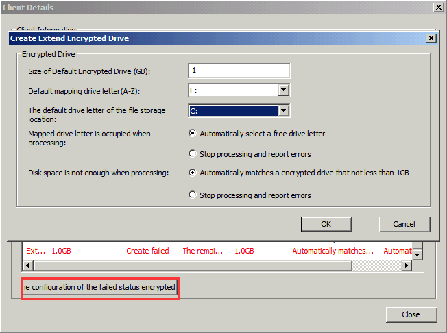 - “Create failed”: clients failed to create local encrypted drive