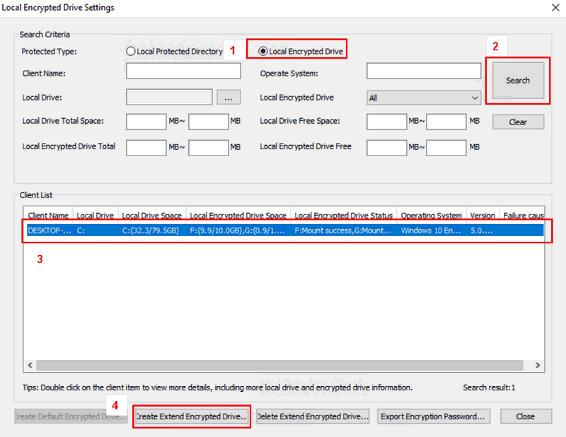 2)Administrators can create Extend Local Encrypted Drive for clients as additional encrypted drive if needed.