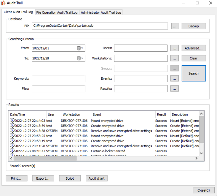 3. Review audit log for Local Encrypted Drive in Curtain Admin
