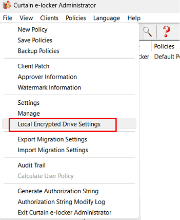 2.1. In Curtain Admin, select “File > Local Encrypted Drive Settings”.