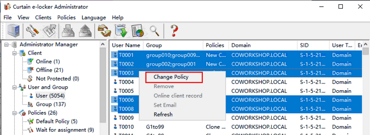 3. Right click and select “Change Policy” to assign users/groups to appropriate Control Policy Group.