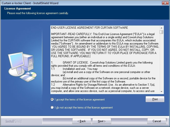 3. Run Curtain client setup program. Make sure that you login Windows with administrator right.