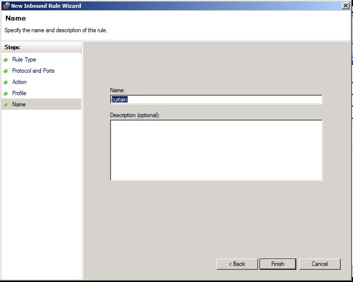 7. Enter “curtain” for the name of this rule, and click Finish.