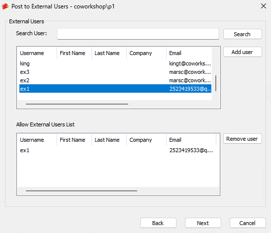 4. Select the external user’s name, click the “Add User” button (you can also double click the user’s name to add them). Then, click the “Next” button.