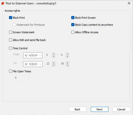 - Block Copy Content to anywhere: When checked, copying the content of the external file to a USB drive or other uncontrolled areas is prohibited.
