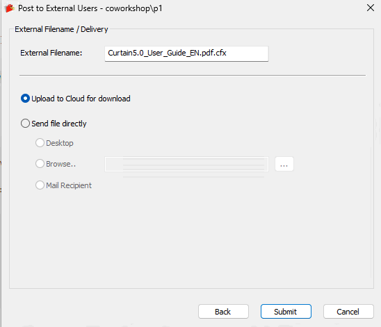 Note: If you select “Send File Directly,” no copy of the external file will be retained on the cloud server.