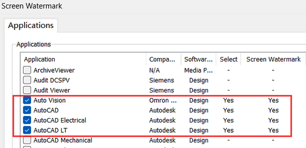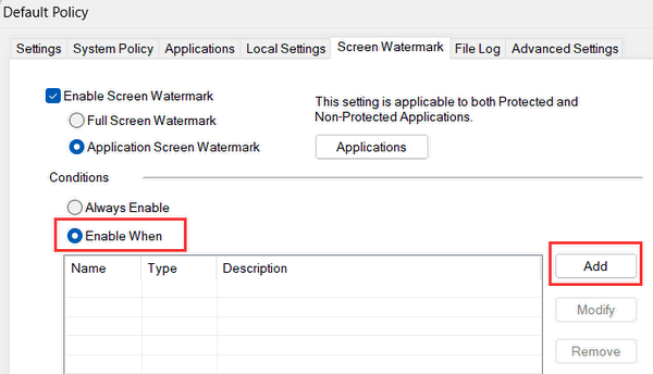 2.3 Click “Applications” button for enabling screen watermark for specific application(s).