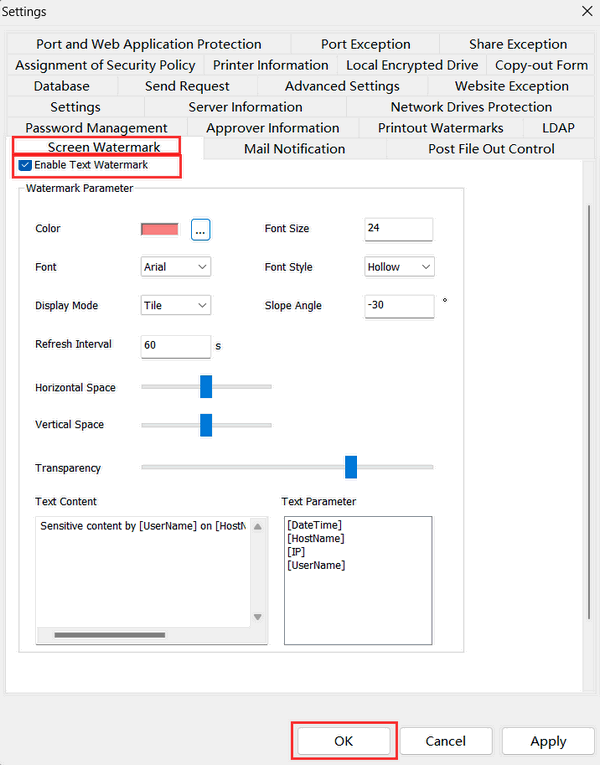2.2 In Screen Watermark tab, select “Enable Screen Watermark”: