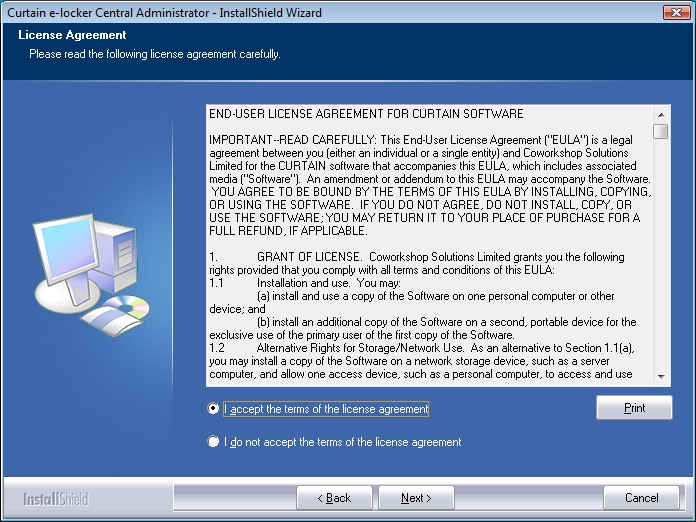 (ii) Run Curtain server setup program (i.e. Curtain3Admin.exe). Make sure that you login Windows with administrator right.