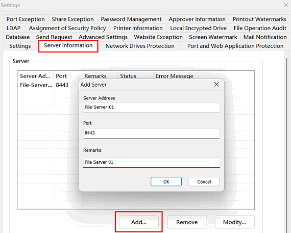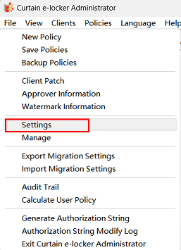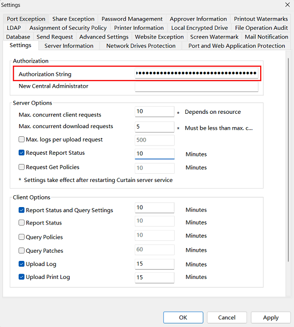 (vi) In Curtain Admin, select “File > Settings” in the menu. Then, “Settings” window will be shown. Enter Authorization String and Click OK.