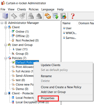 (i) In Curtain Admin, select a Policy Group and right-click to select “Properties”.