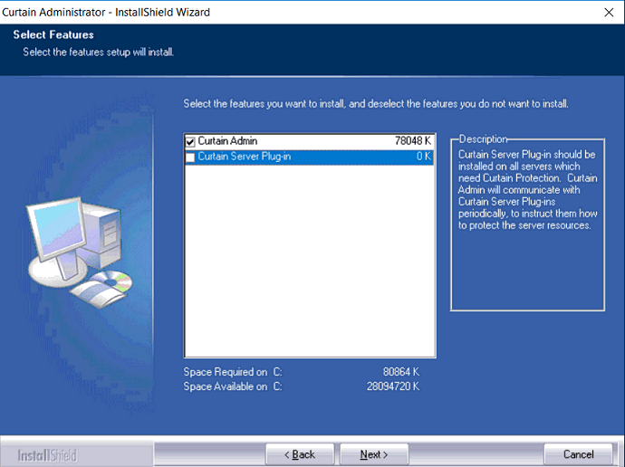 (v) Only select “Curtain Admin” and click Next to install Curtain Admin.
