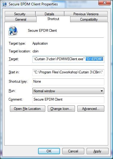 0010 : If using Additional Local Protected Directory for EPDM Local File Vault, we need to modify the shortcut of Secure EPDM Client.